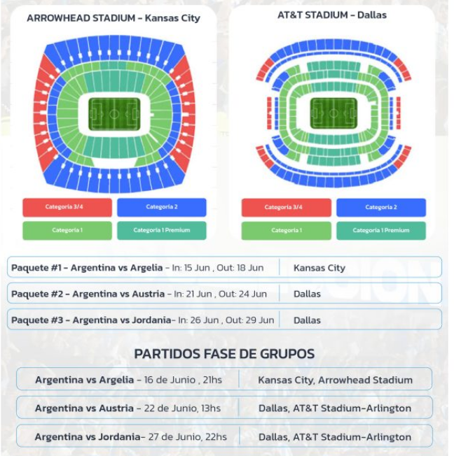 Kansas o Dallas según partido (16, 22 o 27 de junio)